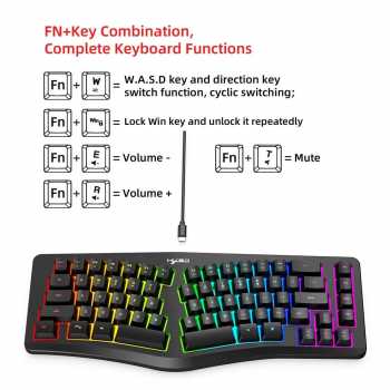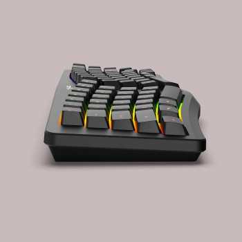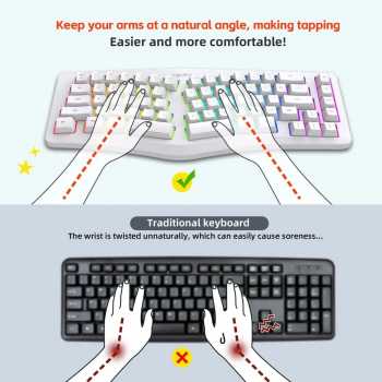 | Desain Ergonomis 69 Key Keyboard ini menggunakan desain split ergonomic dengan tata letak melengkung yang mengikuti posisi alami tangan saat mengetik. Struktur ini membantu mengurangi tekanan pada pergelangan tangan dan jari, meningkatkan kenyamanan penggunaan jangka panjang. Layout 69 key dirancang ringkas dan efisien, menghilangkan tombol yang tidak esensial untuk memberikan ruang lebih optimal di meja gaming. |