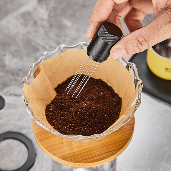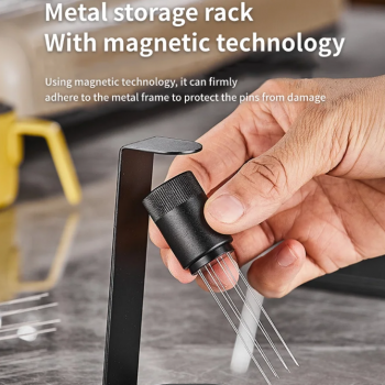 Rasakan pengalaman menyeduh kopi yang lebih profesional dengan stirrer dari MADO, hadir dengan jarum stainless steel 304 yang dirancang untuk mendistribusikan bubuk kopi secara merata. Perpaduan material premium dan desain modern menjadikan alat ini tidak hanya fungsional, tetapi juga menambah estetika pada coffee corner Anda. Dilengkapi pegangan aluminium alloy bertekstur frosted dan dudukan magnetik yang elegan, setiap tahap persiapan espresso menjadi lebih presisi, bersih, dan memuaskan.