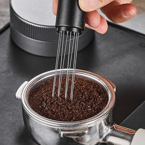 | 8 Jarum Stainless Steel 304 Dilengkapi 8 pin yang menghasilkan distribusi bubuk kopi lebih halus. Jarum 304 stainless steel sangat kokoh, tidak mudah bengkok, dan tahan karat, aman digunakan setiap hari untuk hasil espresso yang sempurna. |