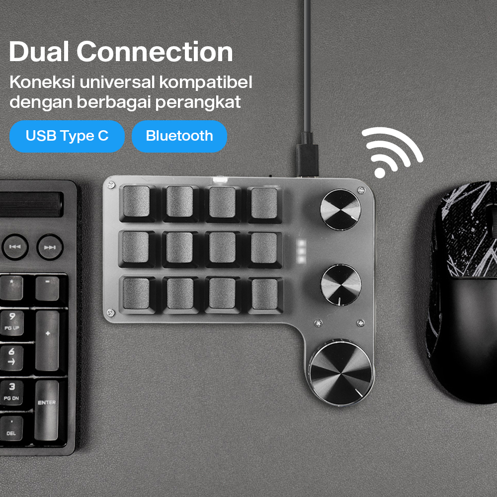 MagiDeal menghadirkan macro keyboard mechanical 12 tombol yang dirancang untuk mempermudah berbagai aktivitas di komputer. Dengan keyboard shortcut macro, Anda dapat menjalankan berbagai perintah hanya dengan satu tombol seperti membuka aplikasi, menjalankan command, hingga kontrol multimedia. Dilengkapi koneksi Bluetooth, kabel USB Type C, serta baterai rechargeable, macro keyboard ini cocok digunakan untuk gaming, editing, streaming, hingga meningkatkan produktivitas kerja.