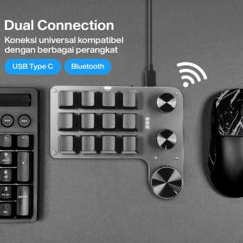| Koneksi Bluetooth dan USB Type C Macro keyboard wired ini mendukung koneksi Bluetooth dan kabel USB Type C sehingga dapat digunakan dengan berbagai perangkat. Dengan macro keyboard bluetooth, Anda dapat menggunakan perangkat secara nirkabel dengan lebih praktis. |