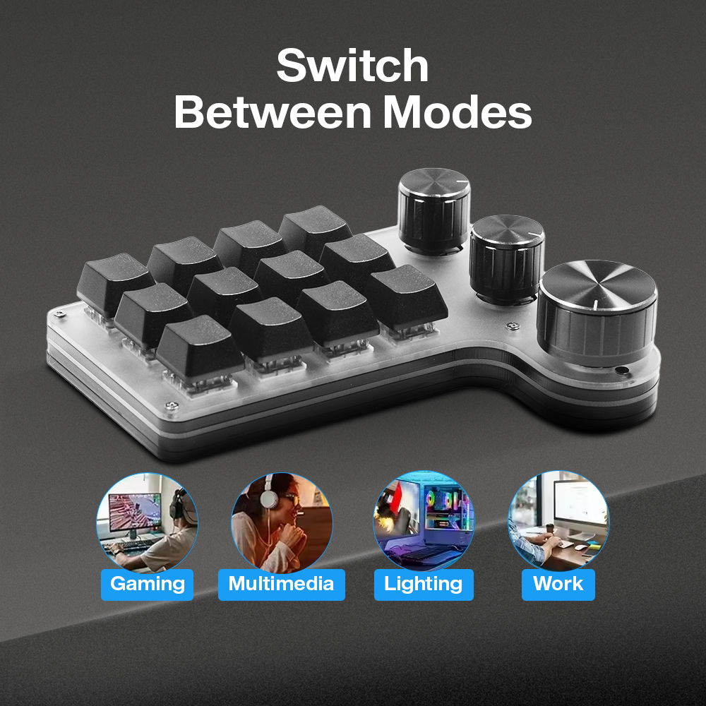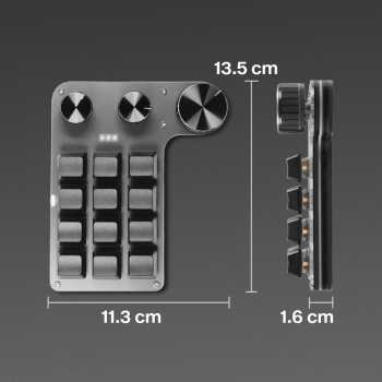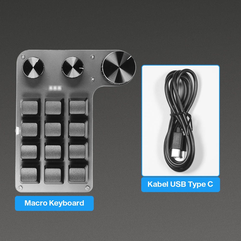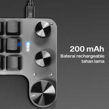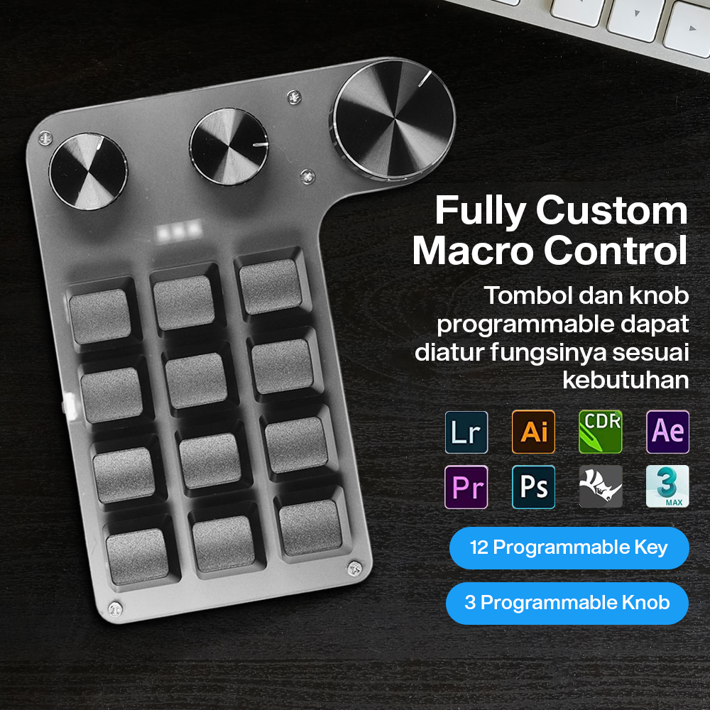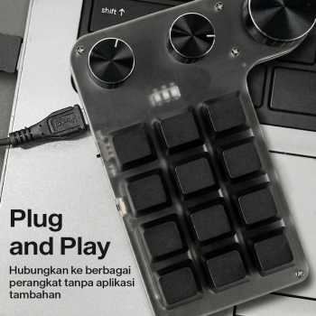 | Tombol Macro yang Bisa Diprogram Keyboard ini dilengkapi 12 tombol macro dan 3 knob yang dapat diprogram sesuai kebutuhan pengguna. Dengan macro keyboard shortcut, setiap tombol dapat diatur untuk menjalankan perintah seperti membuka aplikasi, menjalankan shortcut keyboard, atau mengakses command tertentu. |