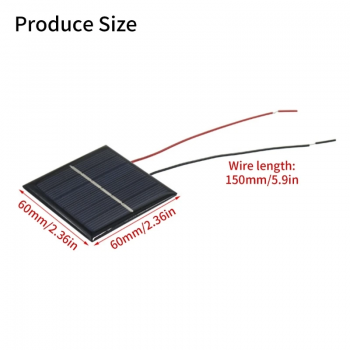 Panel surya mini 60 x 60 mm, ringan dan praktis untuk proyek DIY. Memberi daya 2-3 V 100 mA (0.4 W) cukup untuk LED, kipas mini, atau pompa kecil. Material polikristalin berkualitas, efisien dan tahan lama. Cocok untuk eksperimen energi terbarukan, lampu darurat, mainan edukatif. Bonus konektor dan LED siap pakai!