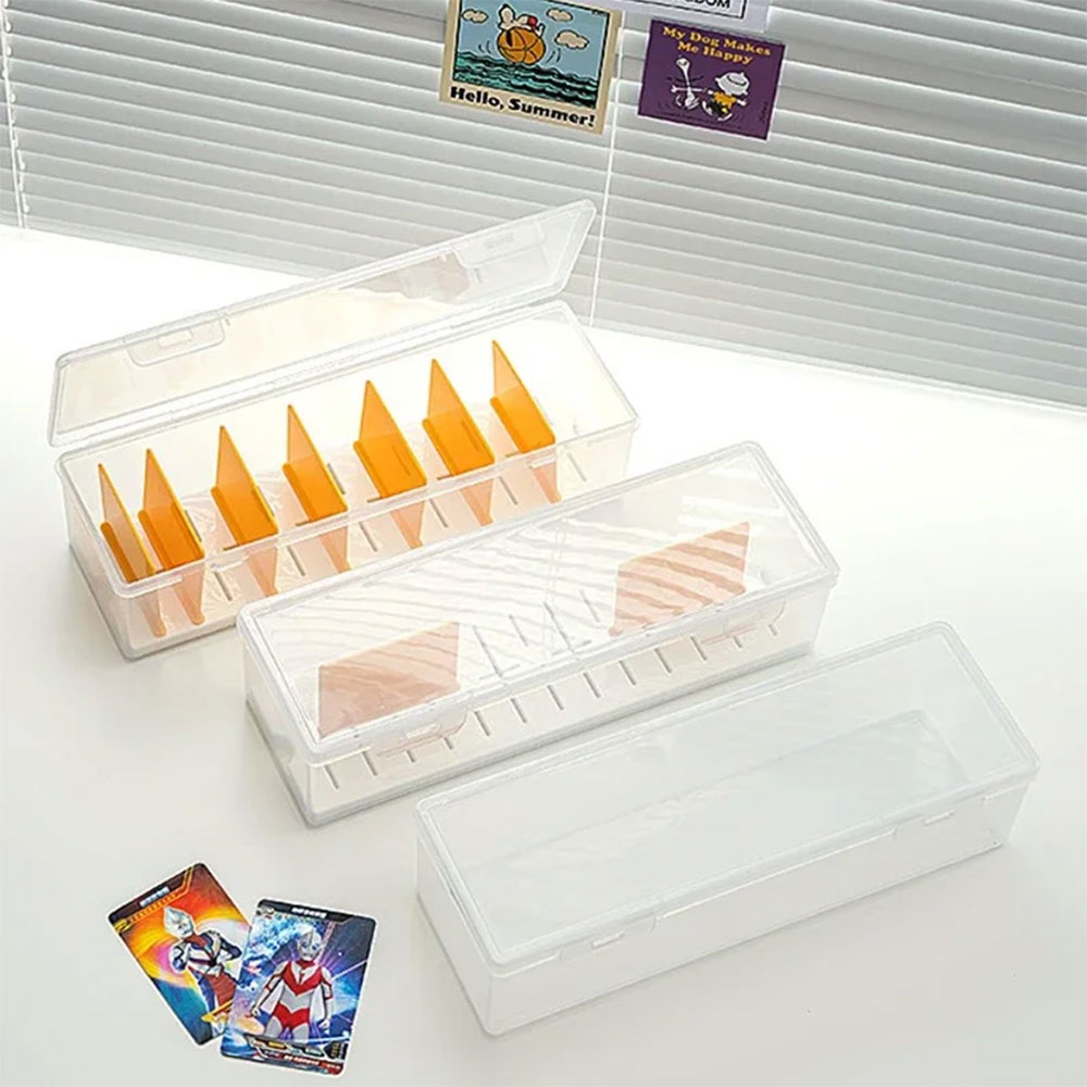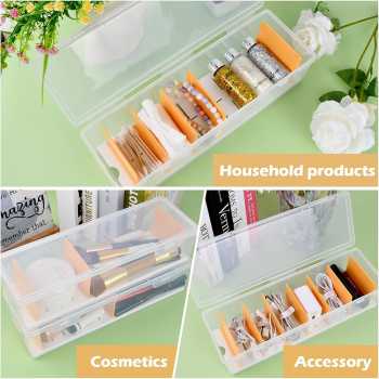 Susah menemukan barang kecil yang tercecer di laci atau meja? Kotak penyimpanan serbaguna ini hadir sebagai solusi penyimpanan harian Anda. Terbuat dari plastik PP transparan berukuran 29.2 x 9.2 x 7.2 cm, kotak ini cukup panjang untuk menampung berbagai jenis barang sekaligus seperti, kabel, kosmetik, kartu mainan, aksesori, alat tulis, dan masih banyak lagi.