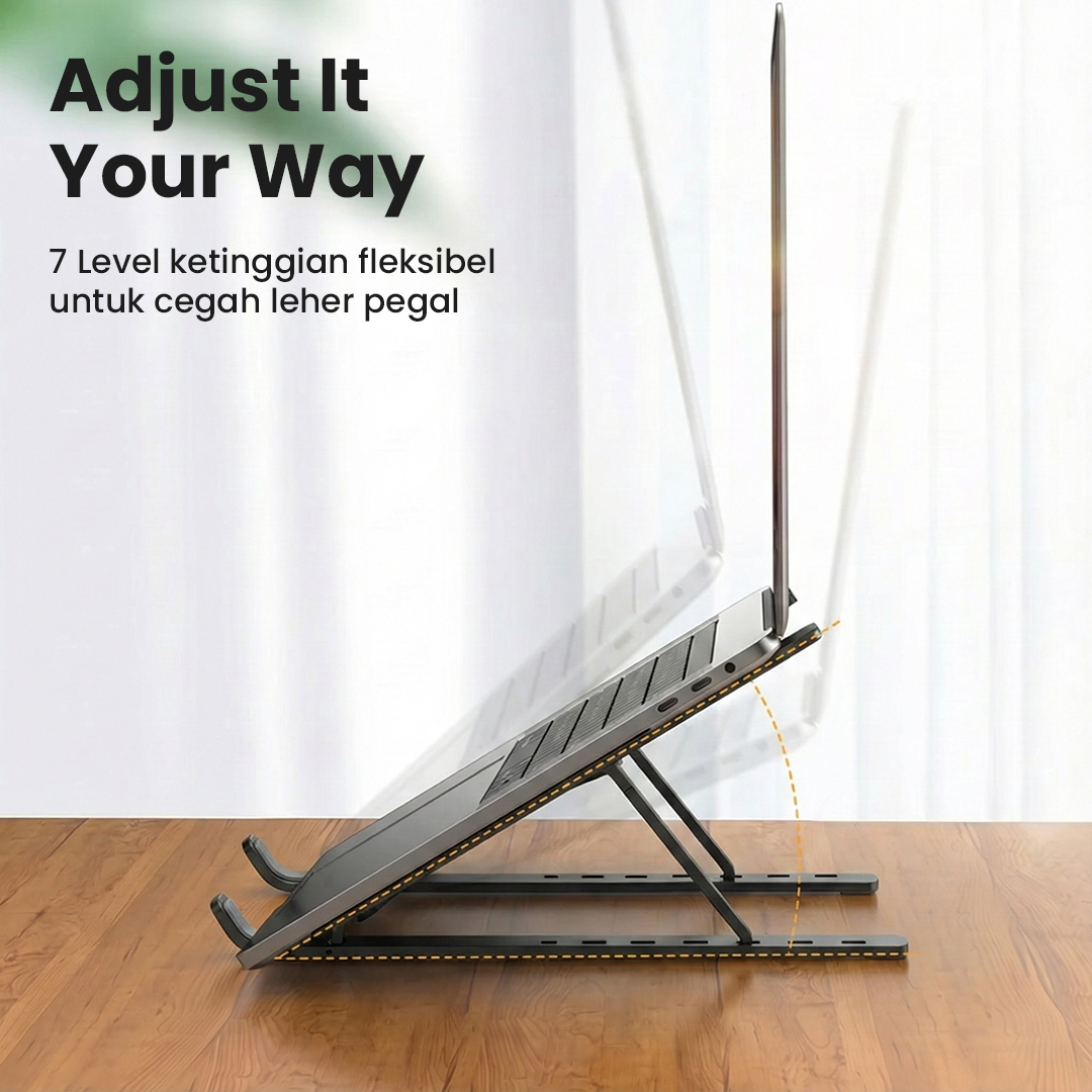 | Leher Bebas Pegal Menawarkan 7 level ketinggian, Anda dapat mengatur posisi laptop sesuai kebutuhan. Kini Anda bisa bekerja dengan nyaman tanpa khawatir leher pegal atau kaku meski dalam waktu yang panjang. |