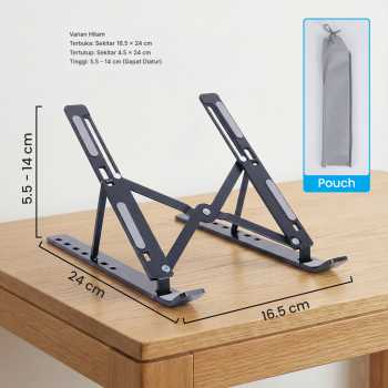 | Ukuran Universal untuk Semua Menawarkan ukuran universal, gunakan stand laptop untuk meletakkan berbagai barang. Mulai dari smartphone, tablet, buku, hingga laptop 16 Inch, semua bisa Anda letakkan di atas stand ini. |