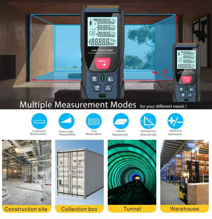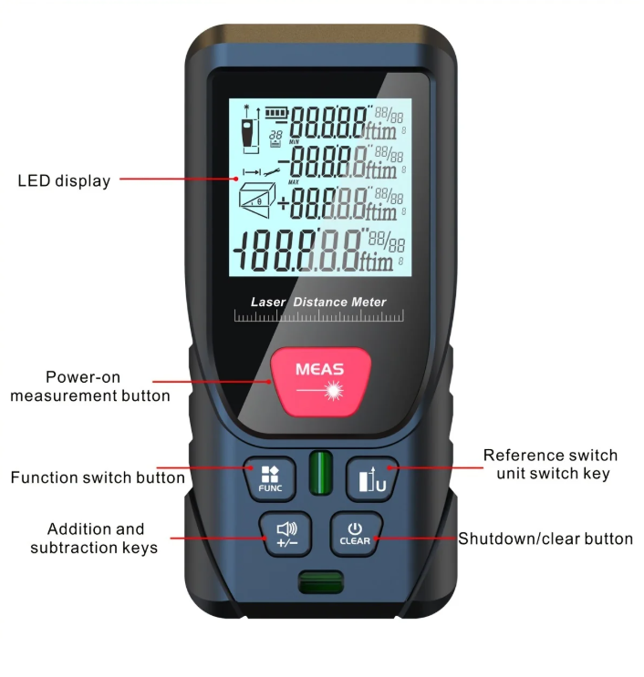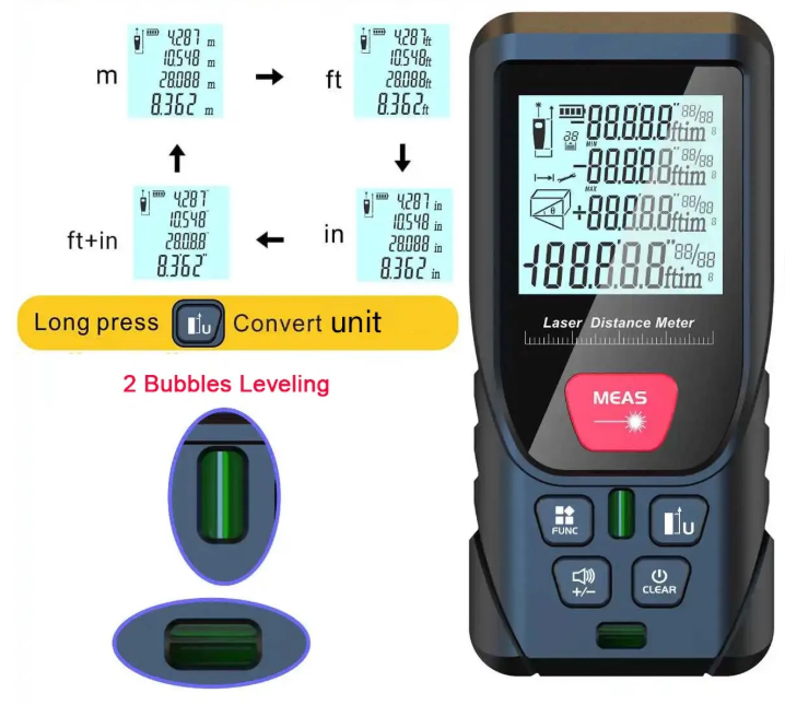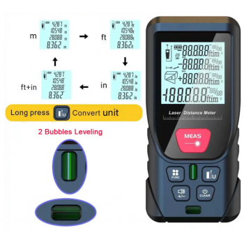 MEAS Laser Distance Meter menggunakan teknologi laser presisi canggih untuk memberikan pengukuran yang cepat, mudah, dan sangat akurat. Dengan desain kompak dan ukuran saku, alat ini sangat portabel dan ideal untuk berbagai aplikasi seperti dekorasi interior, renovasi, penutupan lantai dan dinding, serta penilaian properti. Alat ini menawarkan pengukuran panjang, area, volume, dan menggunakan pengukuran Pythagoras dalam satuan inci, kaki, dan metrik. Dengan pilihan rentang pengukuran hingga 50 M dan 100 M, alat ini sangat efisien untuk pengukuran jarak jauh dengan tingkat akurasi tinggi. Dilengkapi dengan dua gelembung level, alat ini memastikan pengukuran yang presisi bahkan pada permukaan yang tidak rata. MEAS Laser Distance Meter adalah alat pengukuran yang cepat, akurat, dan mudah digunakan untuk berbagai kebutuhan.