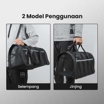 | Model 2in1 Praktis Bawa anabul saat traveling semakin mudah berkat model tas 2in1 yang ditawarkan. Bawa tas dengan cara dijinjing atau diselempang sesuai kebutuhan. |