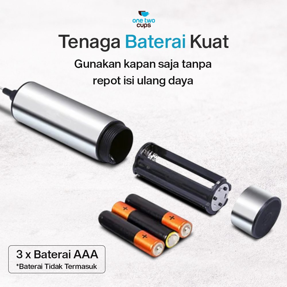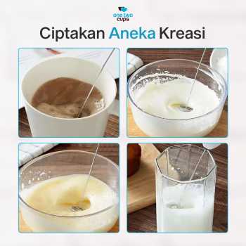 Ingin menghasilkan buih susu lembut ala cafe? Hand mixer mini One Two Cups solusinya! Dirancang khusus untuk menciptakan buih susu sempurna, kini Anda dapat menghasilkan buih susu yang lembut dan creamy dalam hitungan detik. Gunakan untuk mengaduk aneka jenis minuman, mulai dari kopi, jus, hingga telur. Semakin praktis karena menggunakan baterai AAA.