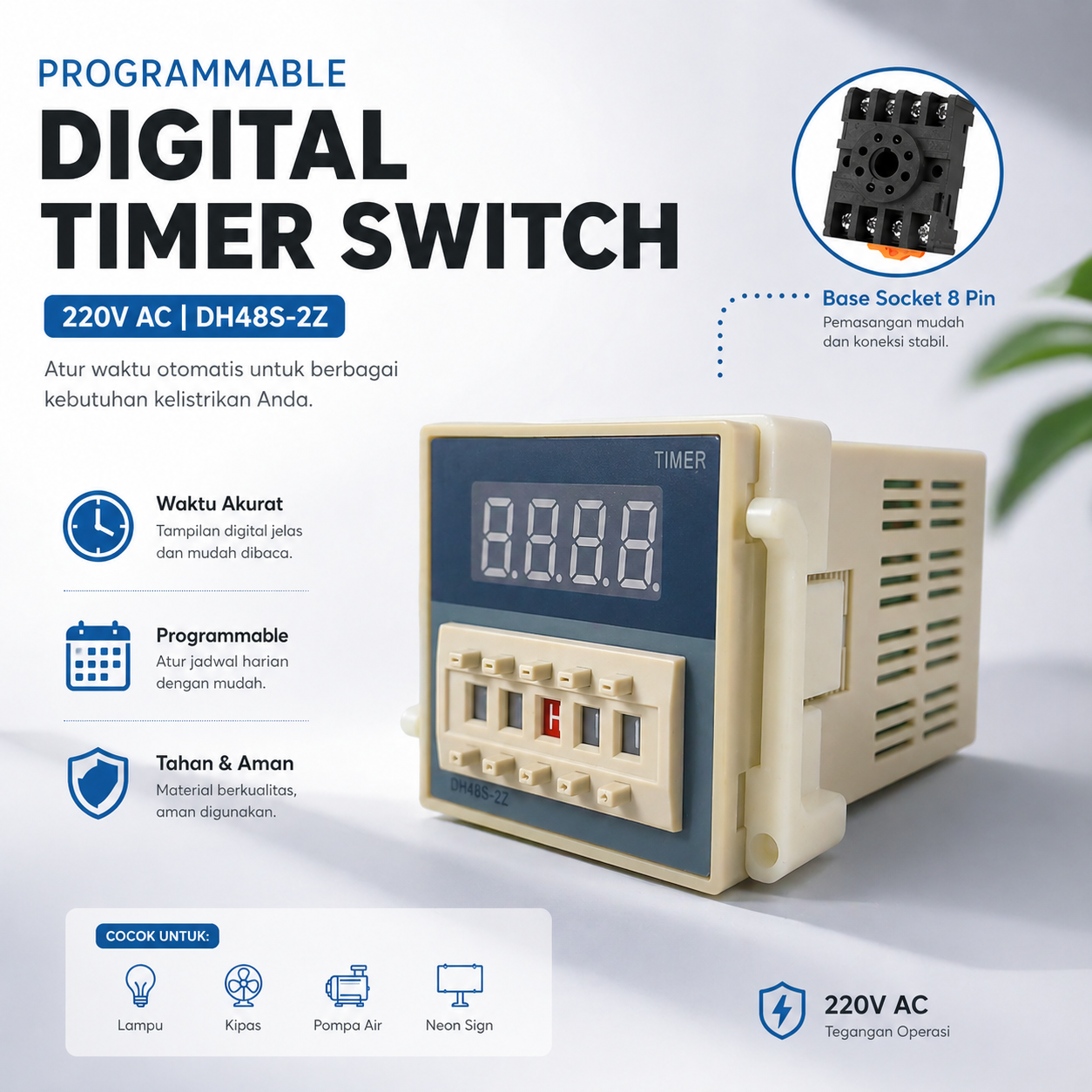 | Kontrol Penggunaan Listrik Anda bisa saja mematikan penggunaan listrik secara manual, tetapi cara tersebut pastinya merepotkan. Itulah mengapa Anda membutuhkan timer switch yang akan bekerja secara otomatis untuk memutus atau mengalirkan listrik ke perangkat elektronik. Cara ini tentunya lebih efisien dan konsisten dibanding cara manual. |