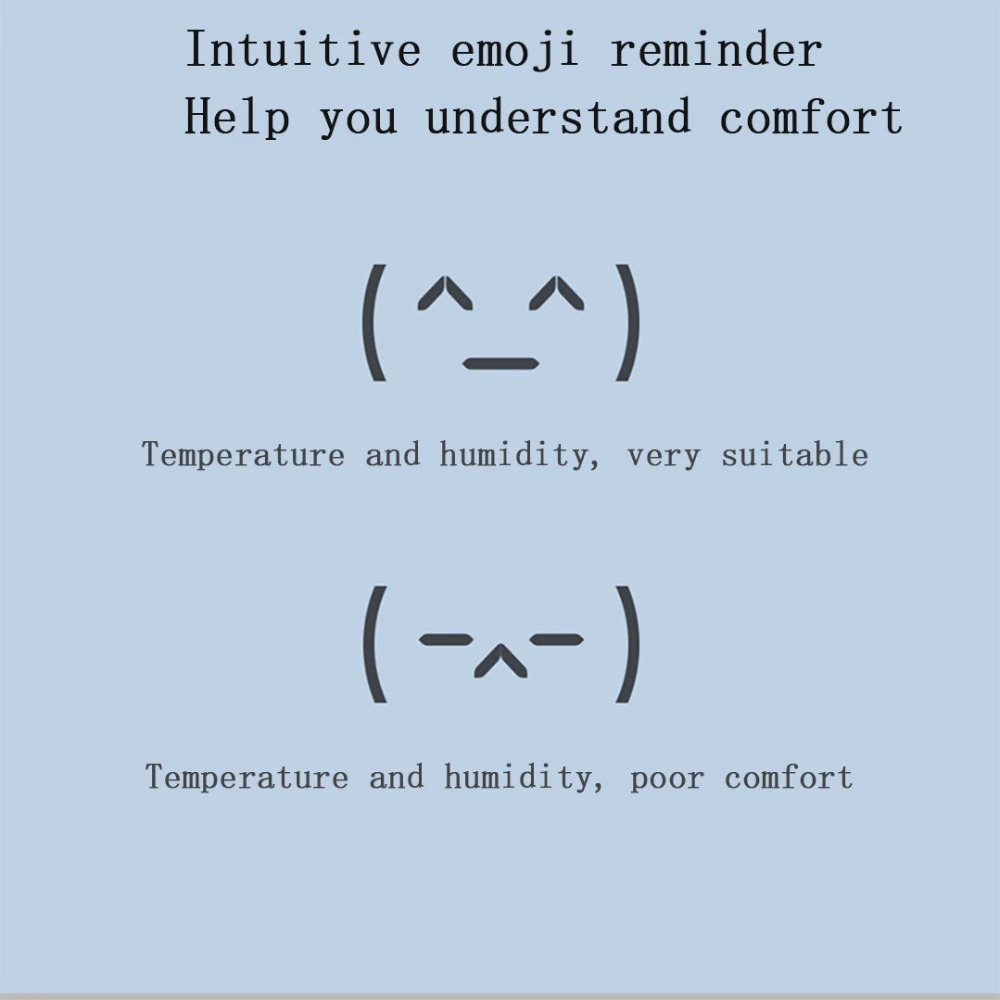 | Emoji Lucu Perbedaan termometer ini dari pengukur suhu yang lain adalah terdapat emoticon yang lucu, dapat berubah-rubah sesuai dengan suhu ruangan secara rela time, menambahkan perhatian khusus untuk suhu ruangan keluarga Anda dengan lebih mudah.