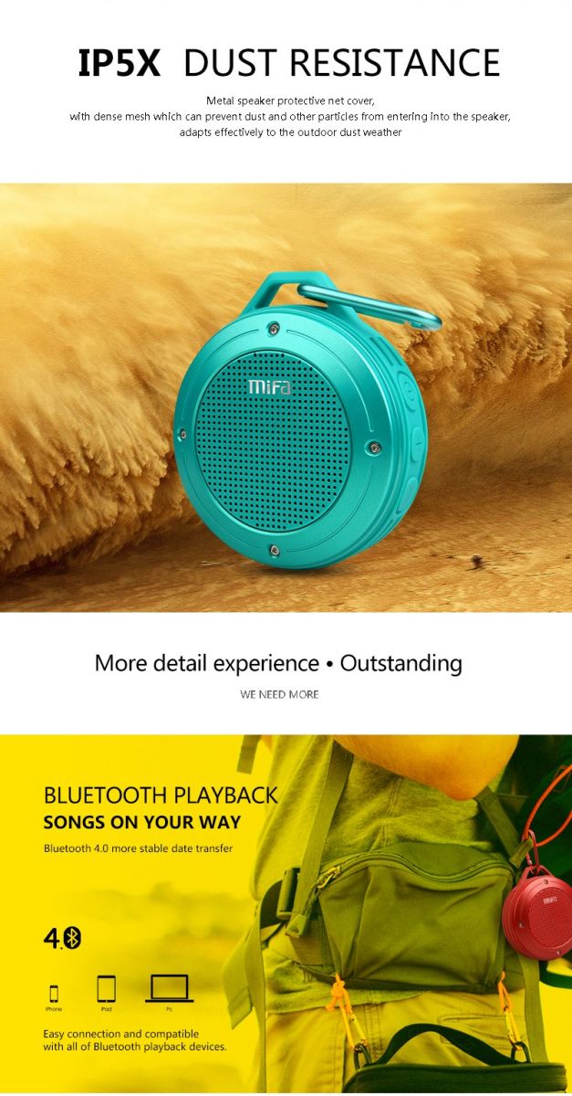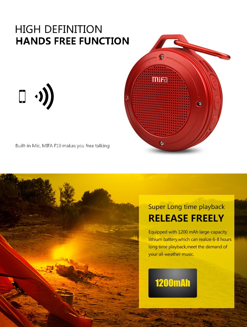 - 1 x MIFA Waterproof Bluetooth Speaker with Mountainering - F10