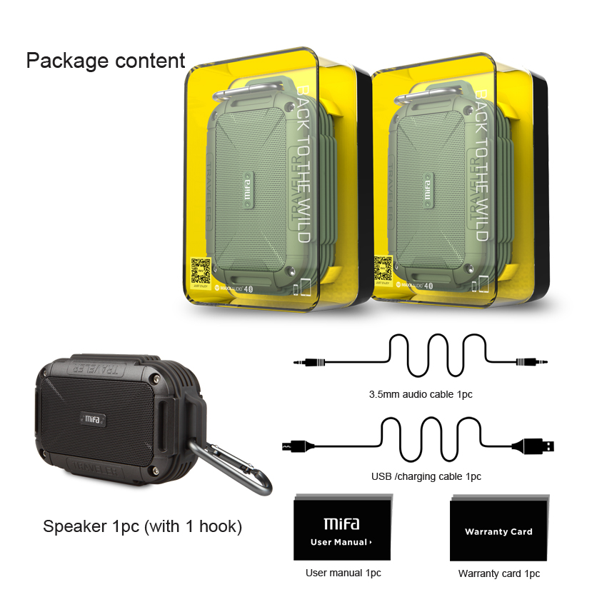 - 1 x MIFA Waterproof Bluetooth Speaker with Carabiner - F7
