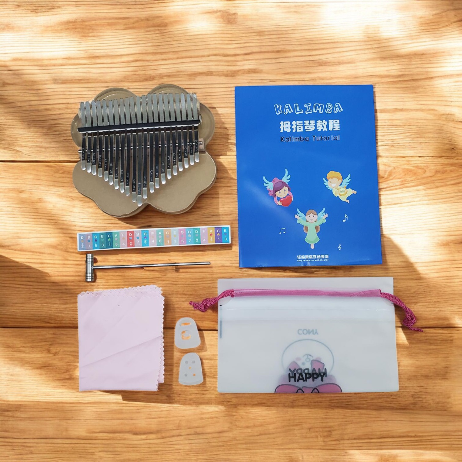 Kalimba Miwayer hadir dengan pilihan desain yang unik, seperti bentuk cherry blossom atau bentuk clover yang lucu dan estetik. Tidak hanya berfungsi sebagai alat musik, bentuknya juga membuatnya layak sebagai aksesori gaya yang menarik perhatian. Cocok digenggam sendiri atau diberikan sebagai hadiah kreatif untuk sahabat dan keluarga yang menyukai musik.