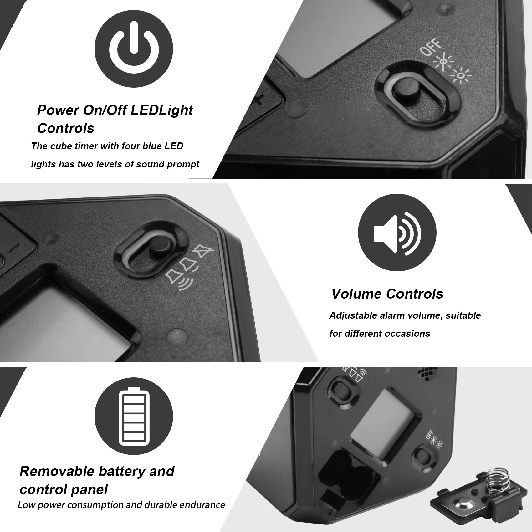 | Angka Terbaca dengan Jelas Timer yang satu ini dilengkapi sistem rotating display yang secara otomatis menyesuaikan orientasi angka mengikuti posisi kubus, sehingga sisa waktu countdown selalu terbaca jelas dari sisi manapun. Fitur ini sangat praktis saat memasak, berolahraga, atau bekerja karena kamu bisa cek waktu sekilas tanpa menghentikan aktivitas. |