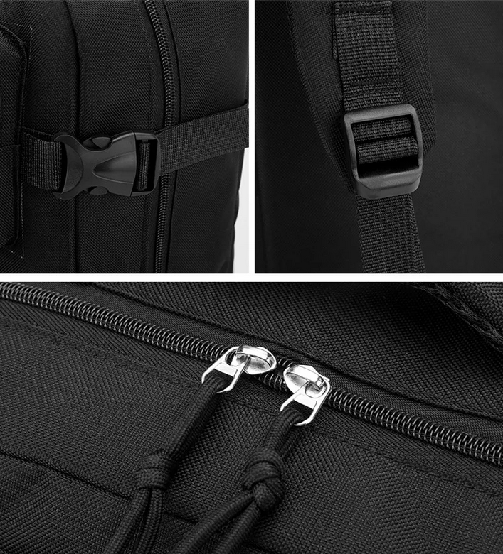 | Material Oxford Waterproof Terbuat dari kain Oxford 900D yang tebal dan tahan air, tas ini melindungi isi dari percikan air dan kelembapan ringan. Lapisan luar dilengkapi coating anti-debu, sementara bagian tali bahu memakai busa breathable agar tetap nyaman digunakan meski dalam cuaca panas atau lembap. Kombinasi material ini memastikan daya tahan tinggi dan pemakaian jangka panjang. |