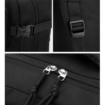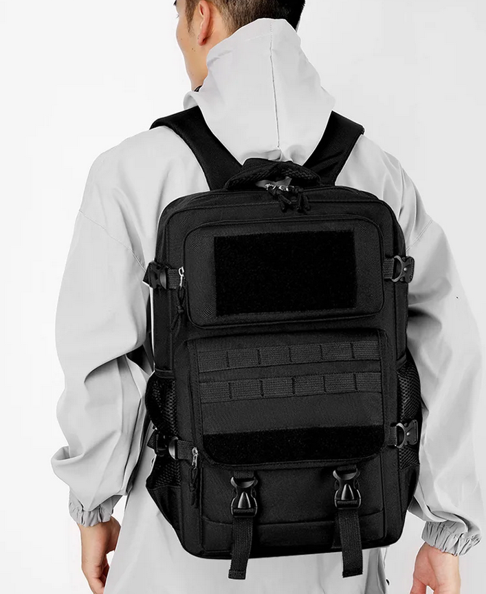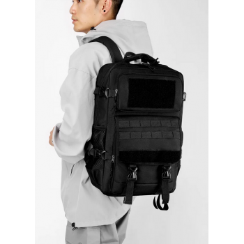 | Desain Tactical & Gaya Maskulin Motif militer yang khas menjadikan tas ini tampil gagah dan serasi untuk kegiatan outdoor. Terdapat sistem MOLLE strap di bagian depan untuk menggantung peralatan tambahan seperti pisau lipat, lampu senter, atau pouch kecil. |