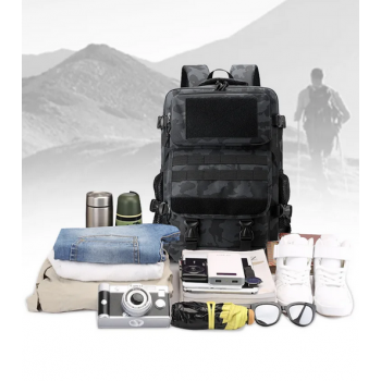 Tas ransel hiking berkapasitas besar ini dirancang khusus untuk aktivitas luar ruangan seperti hiking, camping, atau perjalanan jauh. Menggunakan bahan Oxford berkualitas tinggi yang tahan air, tas ini mampu melindungi perlengkapan dari hujan ringan dan debu. Desain militer memberikan tampilan tangguh sekaligus menyatu dengan alam, ideal untuk penggemar kegiatan outdoor maupun traveler aktif. Dengan banyaknya kompartemen multifungsi dan sistem tali kompresi yang kuat, tas ini membantu menjaga barang bawaan tetap rapi dan stabil.