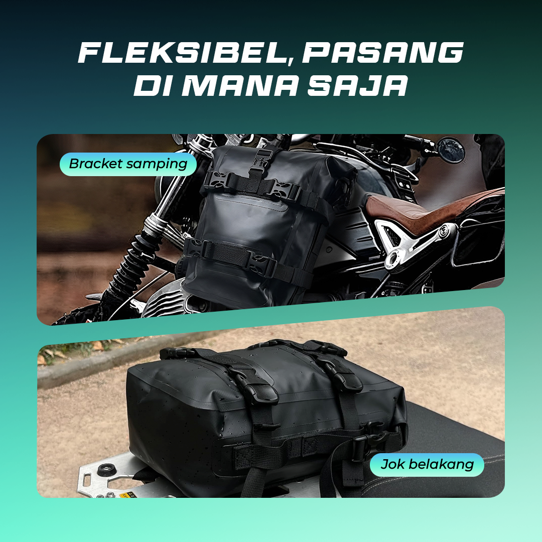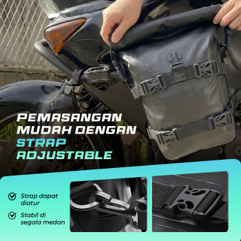 | Kemudahan Pemasangan Pemasangan tas motor ini sangat mudah dengan adanya strap velcro yang dapat dikaitkan ke jok motor Anda. Strap dapat diatur dan menjaga kestabilan tas saat berkendara di berbagai medan. |