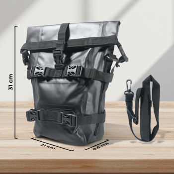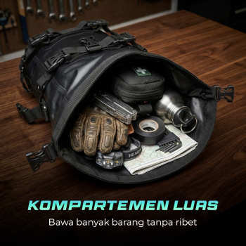| Aman di Segala Cuaca Terbuat dari material oxford yang dipadukan dengan bahan PU, tas ini tahan air dan tahan goresan. Selain itu, tas motor ini juga dibekali cover yang akan memberikan keamanan ekstra ketika hujan. . |