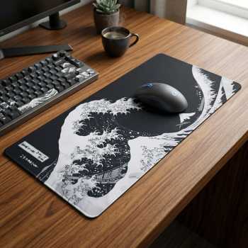 | Desain Japanese Great Wave Klasik Menampilkan ilustrasi ombak khas seni Jepang yang ikonik dengan detail artistik dan kontras warna hitam-putih yang elegan. Cocok untuk mempercantik meja kerja, ruang belajar, maupun setup gaming Anda. |