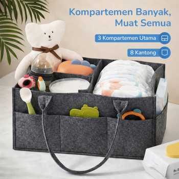 Tas organizer ini memiliki kapasitas luas, banyak kompartemen, dan desain portable. Tas ini membantu Anda menyimpan popok, botol susu, tisu, lotion, hingga mainan bayi dalam satu wadah ringkas namun terorganisir.