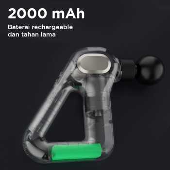 | Rechargeable dan Tahan Lama Baterai rechargeable 2000 mAh dapat bertahan hingga hitungan jam nonstop untuk menghilangkan pegal di berbagai area tubuh. Isi ulang daya untuk gunakan massage gun kapan saja. |