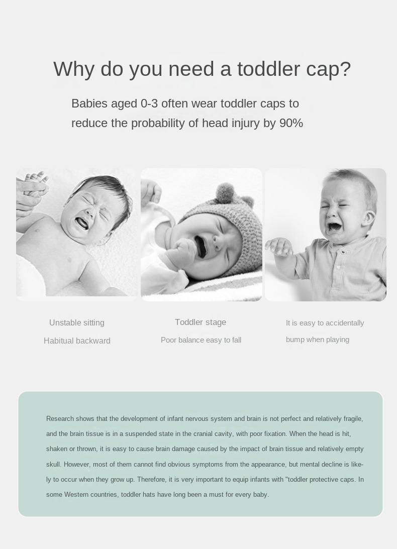 Ketika bayi Anda mulai menjelajahi dunia, menjaga keamanannya adalah prioritas utama. Itulah mengapa topi pelindung kepala bayi dari MY merupakan pilihan tepat untuk memberi proteksi saat bermain. Topi mampu melindungi kepala bayi dari segala arah termasuk bagian atas. Kenyamanannya juga tidak perlu Anda ragukan berkat material kapas tebal yang digunakan. Agar dapat terpasang sempurna, topi dibekali velcro dan tali.