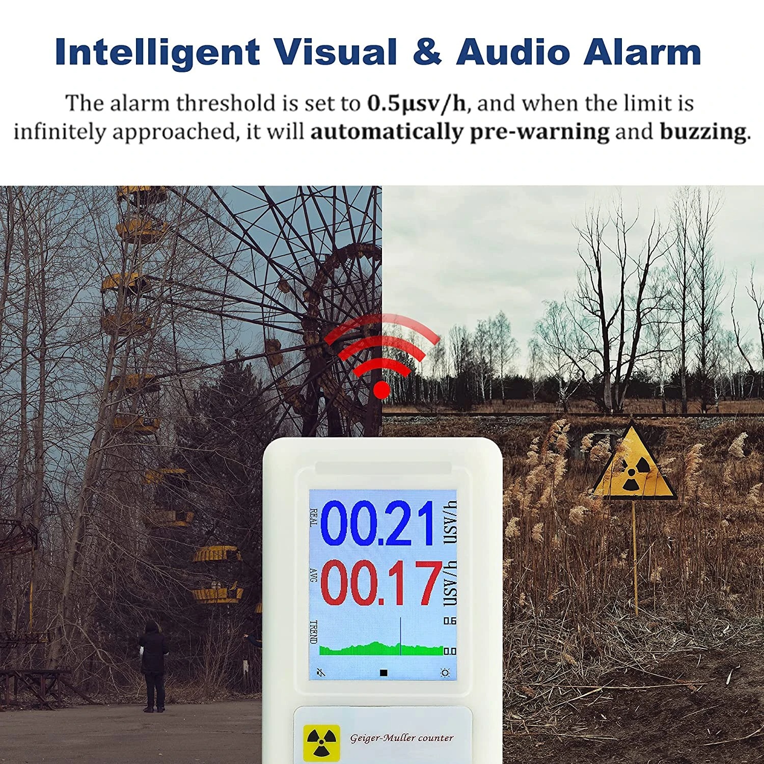 | Alarm Visual dan Audio Cerdas Untuk meningkatkan keamanan, geiger counter ini dibekali alarm visual dan suara yang akan aktif secara otomatis ketika tingkat radiasi melewati ambang batas yang ditentukan. Fitur peringatan dini ini sangat penting untuk membantu pengguna segera menyadari potensi bahaya dan mengambil tindakan pencegahan dengan cepat. |