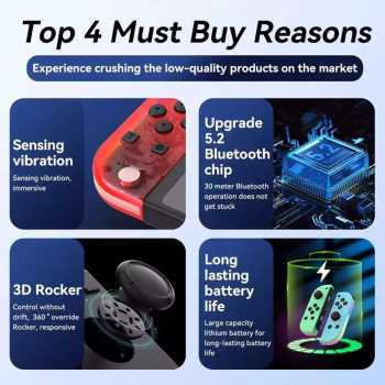 | Bluetooth 5.2 Minim Delay Joy-Con nintendo switch yang mudah drift dan baterai cepat habis adalah keluhan paling umum dari para gamer Nintendo. Dilengkapi analog stick anti-drift, teknologi Bluetooth 5.2 untuk koneksi stabil, dan desain warna hijau biru yang segar dan mencolok. Controller ini kompatibel dengan semua versi Nintendo Switch sehingga tidak perlu khawatir soal ketidakcocokan perangkat. |