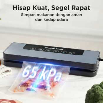 | Hisap Kuat, Segel Rapat Memiliki daya hisap hingga 65 kPa, vacuum sealer ini dapat menyedot udara di dalam kemasan dengan maksimal. Makanan pun dapat tersimpan dengan aman tanpa kharwatir risiko rusak atau kadaluwarsa. |