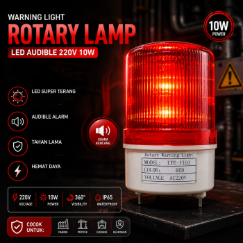 | Peringatan Visual yang Kuat Warning light dilengkapi dengan rotary lamp yang berputar 360°, menghasilkan cahaya merah yang terang dan mencolok dari segala arah. Teknologi LED memberikan intensitas cahaya tinggi dengan konsumsi daya rendah, menjadikannya lebih efisien dan tahan lama dibandingkan lampu konvensional. Ideal untuk memberi tanda bahaya, peringatan mesin, alarm pintu, atau sinyal darurat di area kerja. |