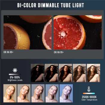 | Berbagai Temperatur Cahaya Hanya dengan satu lampu fill light ini, Anda bisa mendapatkan berbagai warna cahaya untuk mendukung berbagai konsep. Rentang temperatur cahayanya mulai dari warm white (2500 K) yang lembut hingga cool white (9000 K) yang terang. |