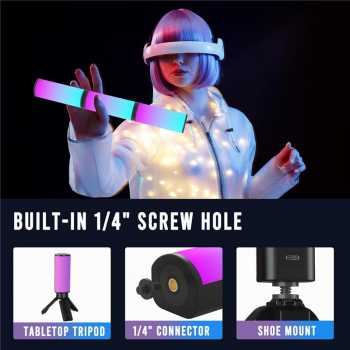 | Ribuan Pilihan Warna Selain cahaya putih, lampu fill light juga mampu menghasilkan full spektrum 360° warna RGB. Dengan spektrum warna sebanyak itu, Anda dapat menciptakan berbagai mood pencahayaan, mulai dari hangat romantis, dingin dramatis, hingga efek neon berwarna mencolok. |
