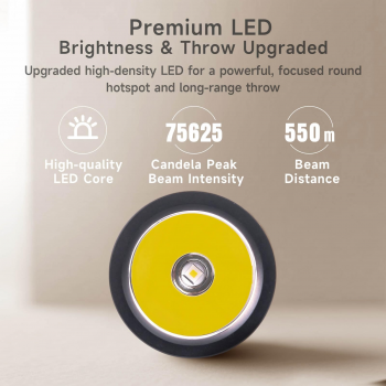 | Sorotan Jarak Jauh 1000 Lumens hingga 550 M NEXTORCH ED30 dirancang untuk menghasilkan cahaya yang fokus dan kuat, sehingga sangat efektif untuk kebutuhan pencahayaan jarak jauh. Output hingga 1000 Lumens memberikan visibilitas yang lebih baik saat digunakan di area terbuka, jalur gelap, lingkungan outdoor, atau saat inspeksi malam hari. Dengan jarak pancar hingga 550 M, senter ini sangat cocok untuk kebutuhan patroli, pencarian, navigasi, dan situasi darurat yang membutuhkan jangkauan cahaya maksimal. |