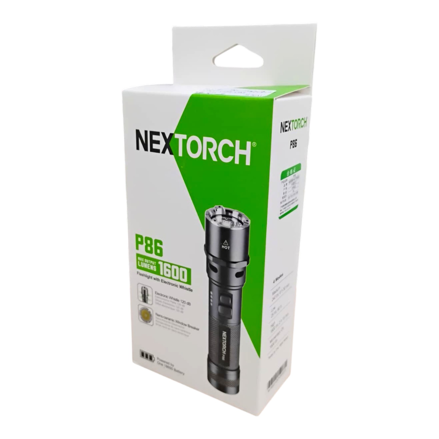 NEXTORCH P86 adalah senter taktis multifungsi dengan cahaya hingga 1600 Lumens dan jangkauan sorot sampai 305 M. Dilengkapi peluit elektronik 120 dB, baterai rechargeable 18650 2600 mAh, serta USB Type-C, senter ini cocok untuk patroli, security, outdoor, dan perlengkapan darurat.