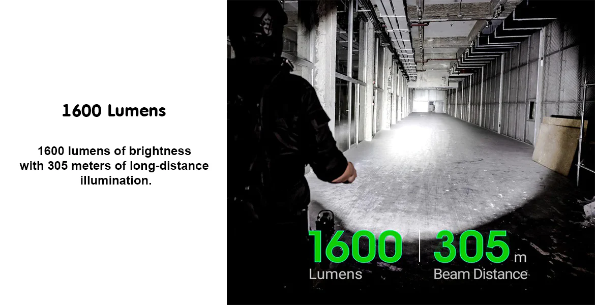 | Cahaya Super Terang 1600 Lumens dengan Jangkauan Hingga 305 M NEXTORCH P86 mampu menghasilkan output cahaya maksimal hingga 1600 Lumens untuk membantu penerangan di area gelap, terbuka, atau jarak jauh. Sorotannya dapat menjangkau hingga 305 M, sehingga sangat efektif digunakan untuk patroli malam, inspeksi area, maupun aktivitas outdoor. Intensitas cahaya yang tinggi ini membuat pengguna lebih mudah melihat objek, jalur, atau situasi di depan dengan lebih jelas dan cepat. |