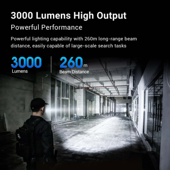 | Jangkauan Sorot Jauh Hingga 370 M Senter ini memiliki kemampuan sorot jauh hingga 370 M sehingga memudahkan pengguna melihat objek atau area pada jarak yang lebih jauh. Fitur ini sangat ideal untuk penggunaan outdoor, penjagaan area, pemantauan lingkungan, maupun inspeksi di area terbuka. Beam yang kuat dan terarah membuat visibilitas lebih baik saat dibutuhkan di kondisi gelap. |