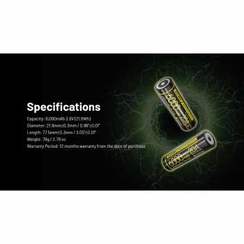 Butuh baterai berkapasitas besar yang dapat diisi ulang? Baterai 21700 dari NITECORE adalah jawabannya. Dengan kapasitas sebesar 6000 mAh, baterai ini mampu mendukung penggunaan senter, lampu, kamera, dan berbagai perangkat lain. Unggul dengan proteksi eksternal dan internal, performa yang tinggi dan aman akan Anda dapatkan. Dijamin terbebas dari logam-logam berbahaya.