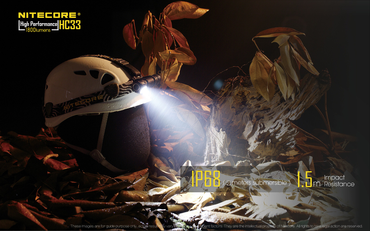 | LED Cree XHP35 HD Senter kepala Nitecore HC33 menggunakan LED Cree XHP35 HD yang dapat menghasilkan cahaya hingga 1800 lumens. Lampu LED Cree XHP35 HD ini memiliki daya tahan yang tinggi karena memiliki masa hidup hingga 50 ribu jam.