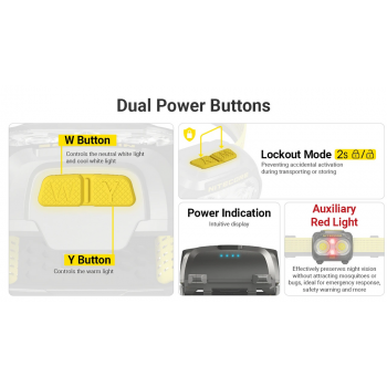 | Mode Lockout Aman Biasanya, headlamp disimpan di dalam saku atau backpack. Untuk mencegah lampu menyala sendiri, NITECORE menyisipkan mode lockout. Dengan mode ini, pengaturan apapun tidak dapat diaktifkan. Sangat berguna untuk mencegah aktivasi yang tidak disengaja. |