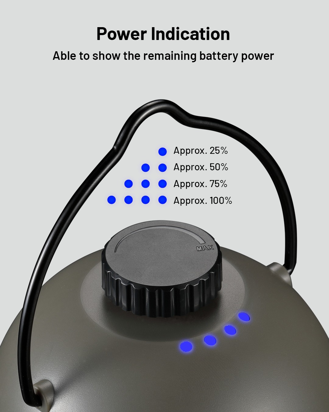 | Tanpa Kabel Mengganggu Salah satu alasan yang membuat lampu LED ini cocok menemani sesi camping Anda adalah sumber dayanya. Jika lampu indikator daya mulai melemah, Anda hanya perlu mengisi ulang lampu dengan kabel USB Type C. Dengan kapasitas baterai sebesar 4000 mAh, lampu dapat menerangi setiap momen camping Anda tanpa adanya kabel listrik.