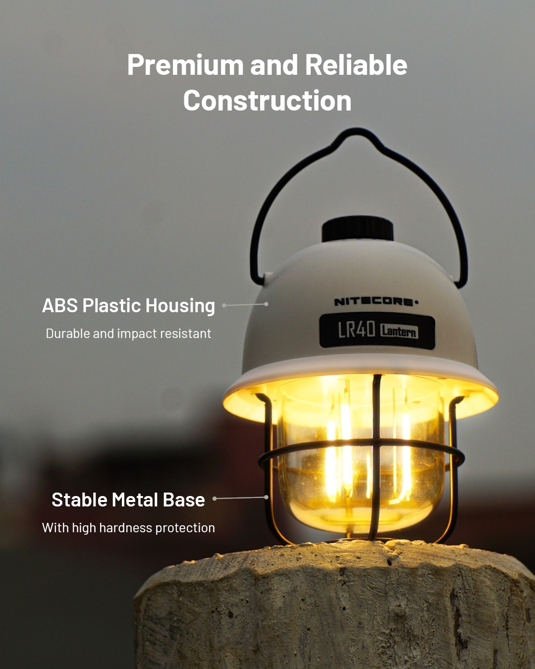 | Konstruksi Premium Desain bergaya retro dibalut material kelas tinggi. Bagian housing tidak mudah rusak meski terbentur karena material ABS yang digunakan. Semakin aman dengan dudukan metal yang melindungi lampu sekaligus memberikan kestabilan saat lampu diletakkan.