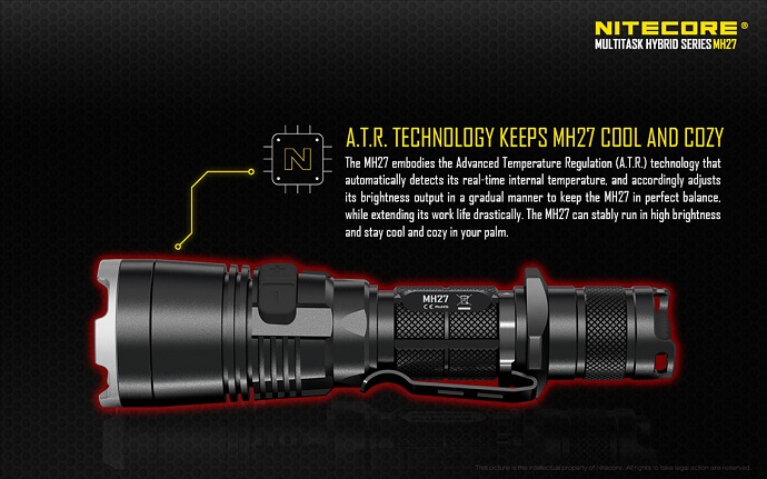 | Teknologi ATR Senter MH27 menggunakan teknologi Advanced Temperature Regulation atau disingkat ATR yang berguna untuk mendeteksi temperatur senter secara langsung dan mengatur temperatur dari senter sehingga senter tidak akan kepanasan saat sedang digunakan.