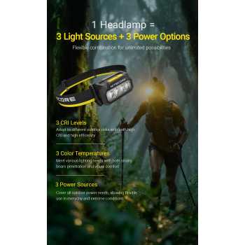 NITECORE HA27 UHE adalah senter kepala serbaguna dengan teknologi MCT UHE yang menghadirkan 3 warna cahaya dalam satu perangkat. Dibekali output hingga 800 Lumens, High CRI hingga 97, serta desain ringan, modular, dan tahan cuaca IPX6, headlamp ini dirancang untuk berbagai aktivitas outdoor seperti camping, trekking, night running, hingga eksplorasi medan ekstrem. Fleksibel dalam sumber daya dan nyaman digunakan, HA27 UHE menjadi solusi pencahayaan andal untuk setiap petualangan.