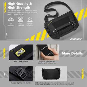 | Material 500D Nylon Cordura Menggunakan CORDURA® 500D nylon yang terkenal kuat dan tahan abrasi. Material ini memiliki ketahanan tinggi terhadap gesekan dan penggunaan jangka panjang. Lapisan dalam menggunakan 400D polyester untuk perlindungan tambahan. Tas bersifat dirt resistant, wear resistant, dan splash resistant, sehingga aman untuk aktivitas harian maupun outdoor ringan. |
