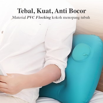 | Tetap Nyaman Saat Traveling Bantal angin menjaga posisi leher agar tetap nyaman selama beristirahat. Lengkungan pada bagian pinggirnya dibuat sesuai dengan lekukan leher. Kini tak ada lagi leher yang pegal atau kaku saat bangun tidur. |