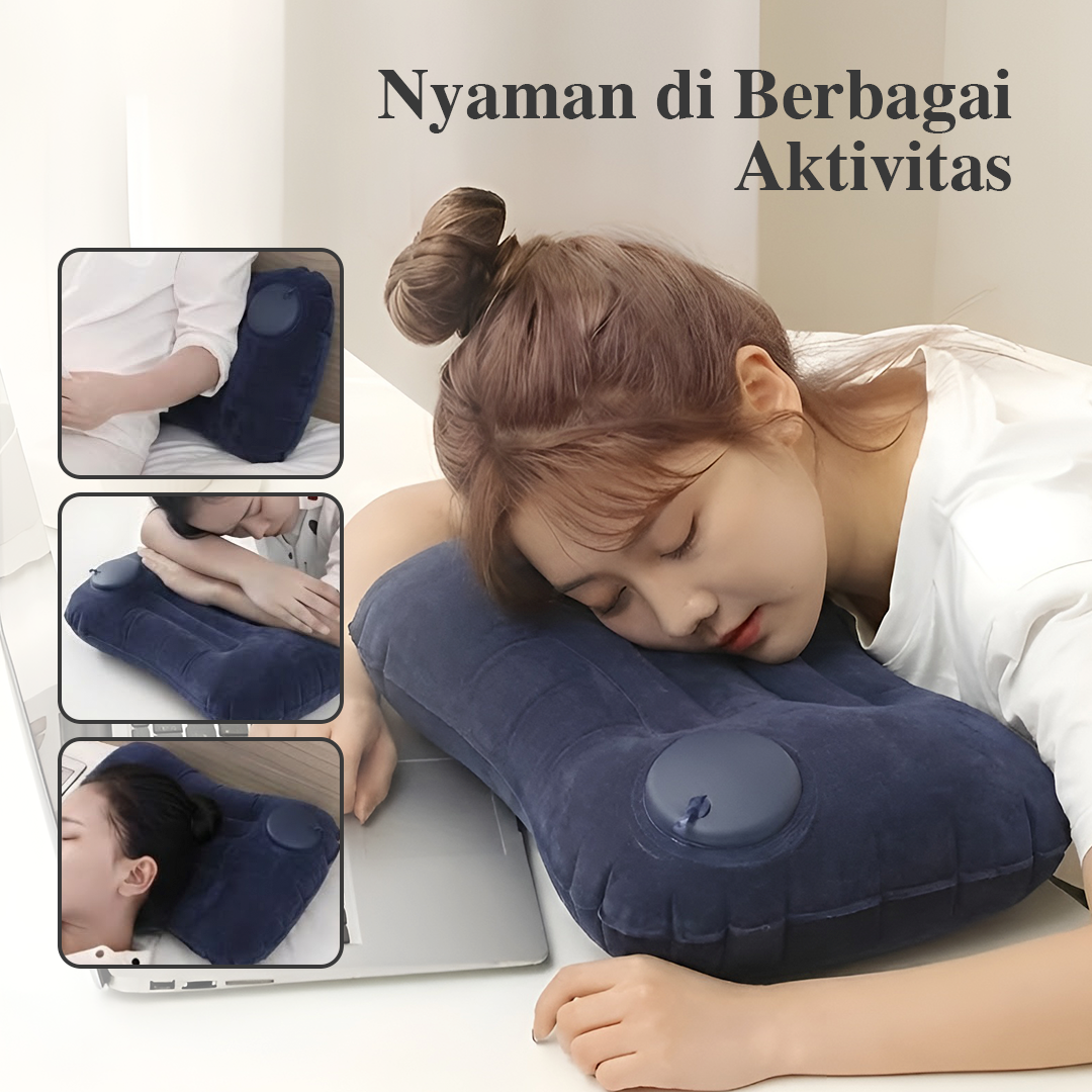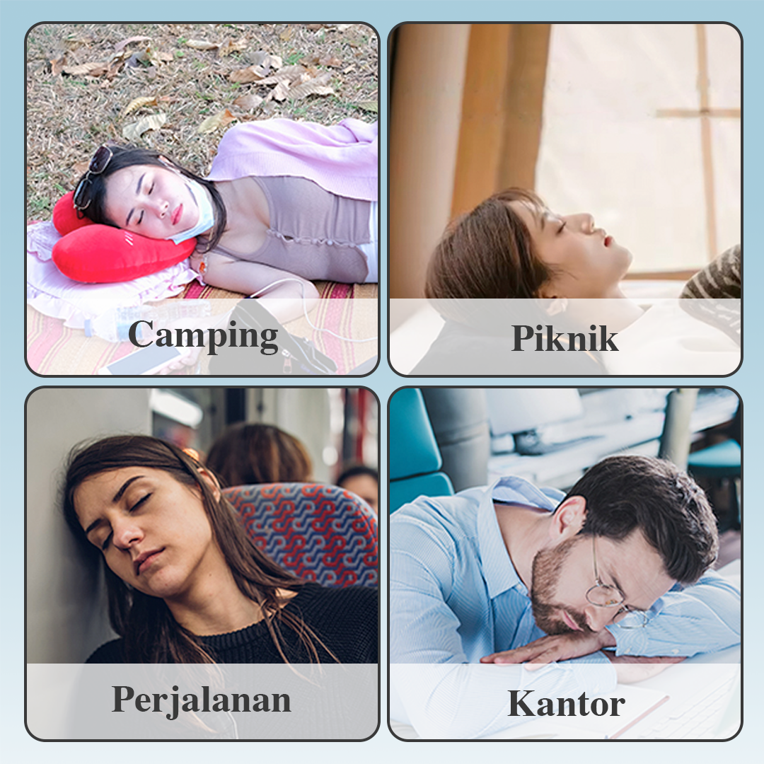 | Tetap Nyaman Saat Traveling Bantal angin menjaga posisi leher agar tetap nyaman selama beristirahat. Lengkungan pada bagian pinggirnya dibuat sesuai dengan lekukan leher. Kini tak ada lagi leher yang pegal atau kaku saat bangun tidur. |