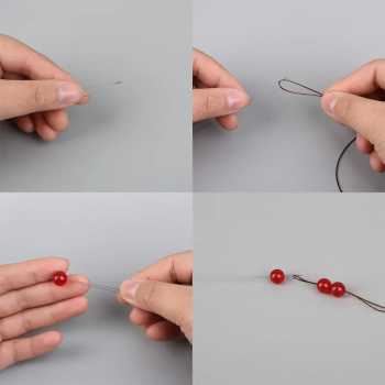 | Mudah Digunakan Anda bisa menggunakan jarum manik-manik ini dengan mudah. Masukkan benang atau kawat perhiasan ke jarum, lalu tusukkan ujung jarum ke lubang manik-manik dan dorong hingga manik masuk, kemudian geser manik ke benang, ulangi proses ini sampai jumlah atau pola yang diinginkan tercapai. |