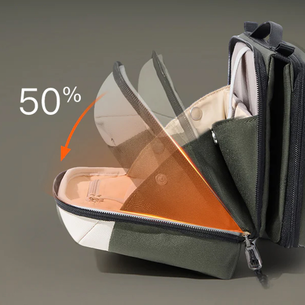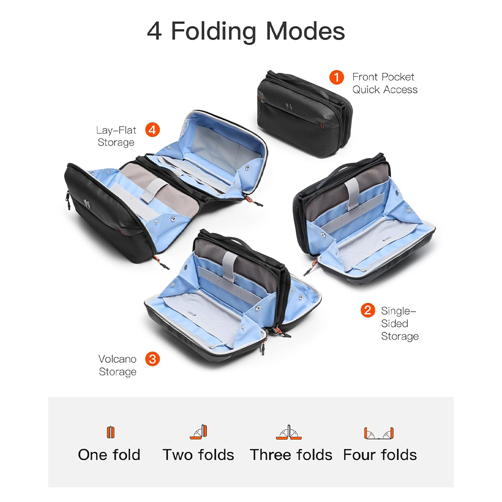 | 4 Mode Lipat Fleksibel Tas organizer ini memiliki 4 mode lipatan yang dapat disesuaikan dengan kebutuhan penggunaan. Mulai dari mode ringkas untuk quick access, single-sided untuk penggunaan cepat, hingga lay-flat storage yang terbuka penuh agar seluruh isi terlihat jelas. Sistem lipat cerdas ini memudahkan Anda mengatur barang tanpa harus mengeluarkan semuanya sekaligus. |